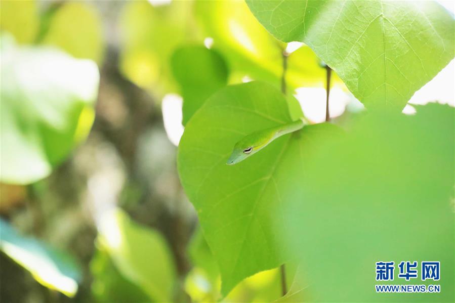 這是7月19日在馬來(lái)西亞沙撈越州峇哥國(guó)家公園拍攝的綠瘦蛇。設(shè)立于1957年的峇哥國(guó)家公園坐落于馬來(lái)西亞沙撈越州,擁有豐富的野生動(dòng)植物物種。新華社記者 朱煒 攝