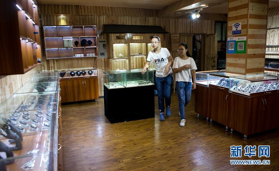 8月3日,前來體驗(yàn)銀飾制作的青少年參觀龍?zhí)柕你y飾陳列展臺(tái)。