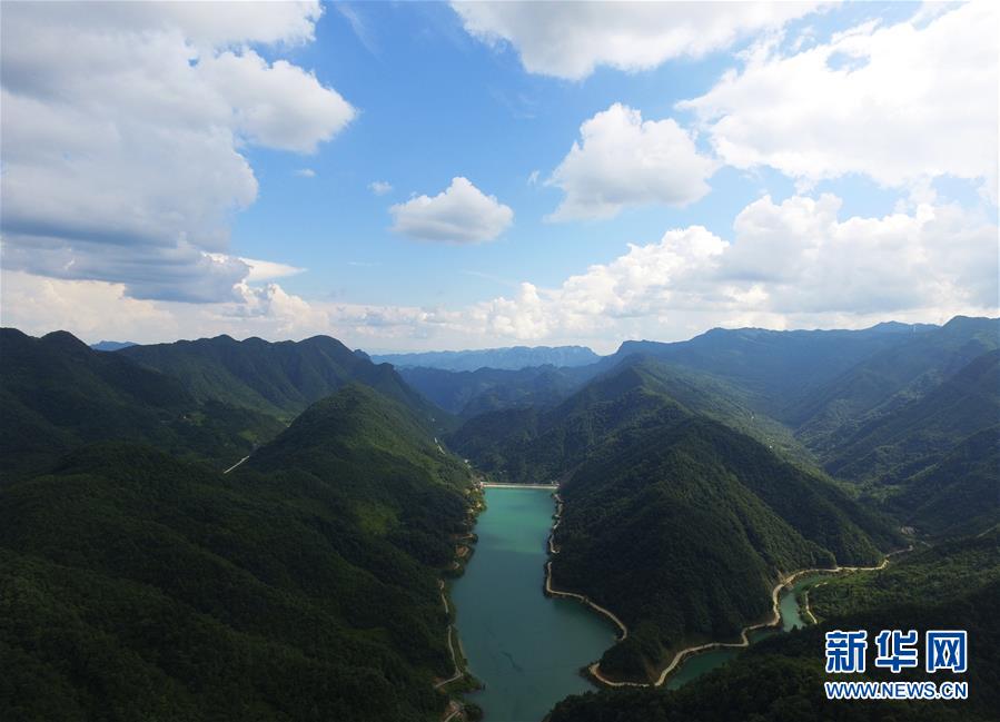 這是重慶市武隆區(qū)接龍鄉(xiāng)接龍水庫(kù)一帶風(fēng)景(8月10日無(wú)人機(jī)拍攝)。