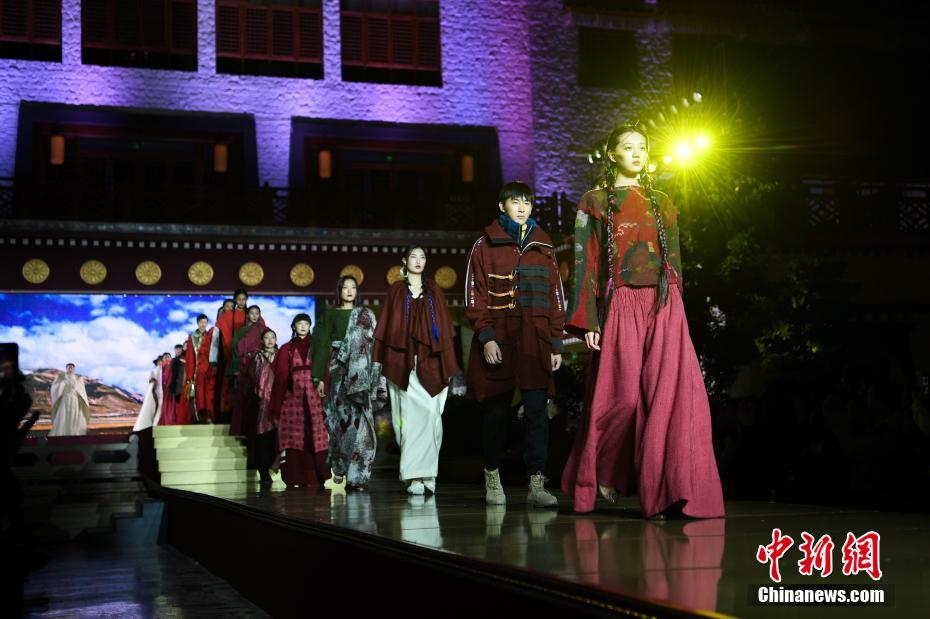 8月12日晚,由西藏職業(yè)技術(shù)學(xué)院與北京服裝學(xué)院共同打造的“凈美雪頓·美好生活”西藏民族服裝與服飾展演活動(dòng)在拉薩舉行?,F(xiàn)場(chǎng)通過(guò)傳統(tǒng)篇、現(xiàn)代篇與未來(lái)篇三個(gè)篇章,展演了藏族傳統(tǒng)服裝26套,設(shè)計(jì)創(chuàng)新服裝58套,共計(jì)84套服裝。圖為模特展示藏族傳統(tǒng)服飾。中新社記者何蓬磊 攝