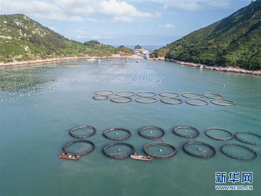 8月18日,漁船在南麂島馬祖岙海域的“海上牧場(chǎng)”大黃魚養(yǎng)殖區(qū)內(nèi)喂食(無(wú)人機(jī)拍攝)。南麂島位于浙江東南海域,水質(zhì)好,水溫、鹽度都適合大黃魚等養(yǎng)殖魚類的生長(zhǎng)繁殖,因此當(dāng)?shù)氐乃a(chǎn)品也一直保持了較高的品質(zhì)和口碑。進(jìn)入8月,浙江省溫州市平陽(yáng)縣南麂鎮(zhèn)海域上大片的大黃魚、貽貝等特色海產(chǎn)品養(yǎng)殖區(qū)域迎來(lái)豐收季節(jié),養(yǎng)殖戶們駕駛漁船在養(yǎng)殖區(qū)海域進(jìn)行打撈收獲,在碧海藍(lán)天下構(gòu)成了一幅“海上牧場(chǎng)”的美麗豐收景象。近年來(lái),南麂鎮(zhèn)政府引導(dǎo)漁民養(yǎng)殖戶充分發(fā)揮“靠海吃海”的資源優(yōu)勢(shì),大力發(fā)展海洋養(yǎng)殖經(jīng)濟(jì)和海島旅游經(jīng)濟(jì),實(shí)現(xiàn)了南麂由“生態(tài)美”向“產(chǎn)業(yè)美”,“產(chǎn)業(yè)美”向“經(jīng)濟(jì)美”的轉(zhuǎn)變。同時(shí)該鎮(zhèn)堅(jiān)持以大黃魚、貽貝等為特色產(chǎn)業(yè)支撐,精準(zhǔn)發(fā)展高效海洋養(yǎng)殖業(yè),重點(diǎn)培養(yǎng)一批新型職業(yè)漁民,依靠專業(yè)技術(shù)支持,實(shí)現(xiàn)深海仿生養(yǎng)殖,讓好生態(tài)造就好品質(zhì),重點(diǎn)打造南麂養(yǎng)殖品牌,組建營(yíng)銷網(wǎng)絡(luò),拓展特色海產(chǎn)品市場(chǎng)。新華社記者 徐昱攝