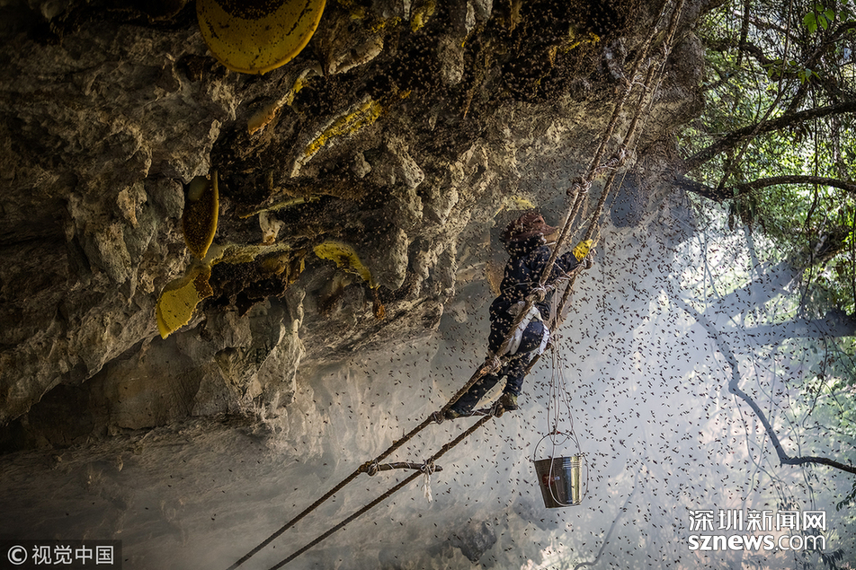 ?“最難采摘的崖蜜,是凹進懸崖內側3至5米的那種。”兩年來,小蕊親自跟采了十幾趟蜜,最怕遇到凹陷的蜜源。