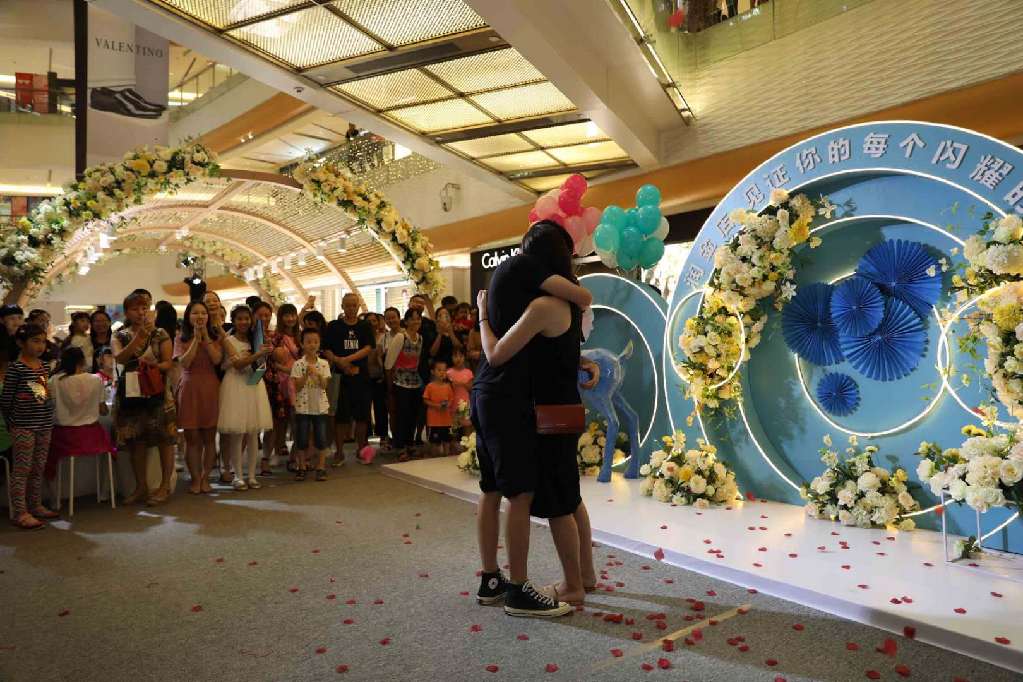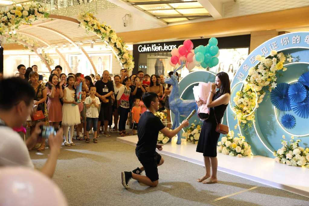 開幕式當(dāng)天,潤金店工作人員還配合市民楊先生上演了一場浪漫的“求婚大作戰(zhàn)”。原來,數(shù)日前,楊先生到潤金店表示要買一枚與眾不同的戒指向女友求婚。在銷售顧問的建議下,楊先生選購了一枚藍寶石戒指作為求婚信物。得知楊先生的心意后,潤金店品牌策劃部決定與楊先一起在七夕當(dāng)天完成這場浪漫的“求婚大作戰(zhàn)”。當(dāng)天,楊先生帶著毫不知情的女友來到潤金店“炫出色彩 耀你不凡”VIP品鑒會現(xiàn)場。正當(dāng)女友全神貫注欣賞小提琴、拉丁舞等開幕式表演節(jié)目時,楊先生從兜里掏出事先準(zhǔn)備好的藍寶石戒指,單膝跪地向一臉茫然的女友喊:“嫁給我吧?!贝藭r,開幕式現(xiàn)場背景音樂“配合”地?fù)Q成了甜蜜的《今天你要嫁給我》。感動得熱淚盈眶的女友在圍觀市民的歡呼中,拉起了楊先生,并答應(yīng)了他的求婚。圍觀市民表示“七夕不過是路過,卻不料狠狠地吃了一把狗糧?!?/p>