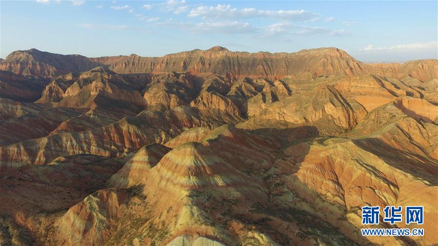 這是7月15日拍攝的蘭州樹屏丹霞地貌。蘭州樹屏丹霞國家地質公園位于甘肅省蘭州市永登縣咸水河流域及其毗鄰地區(qū),分布在蘭州市所屬的永登縣、皋蘭縣、西固區(qū)、安寧區(qū),主體位于永登縣樹屏鎮(zhèn)、苦水鎮(zhèn)和西固區(qū)河口鎮(zhèn)。其主體地質遺跡為丹霞和彩色丘陵,登高遠眺,綿延起伏,絢爛瑰麗,如同大自然創(chuàng)作的壯美油畫。新華社記者陳曄華 攝