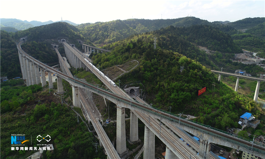 貴州省地處中國西南腹地,全省高原山地居多,因此高鐵建設(shè)的橋隧占比較高。在貴陽市烏當(dāng)區(qū)新添寨,高鐵滬昆線、貴廣客運專線、貴開城際客運專線的隧道和橋梁交織在一起,形成“五洞五橋”并行,形似“五龍出?!钡膲延^景象(3月29日攝)。新華網(wǎng)周遠鋼 攝