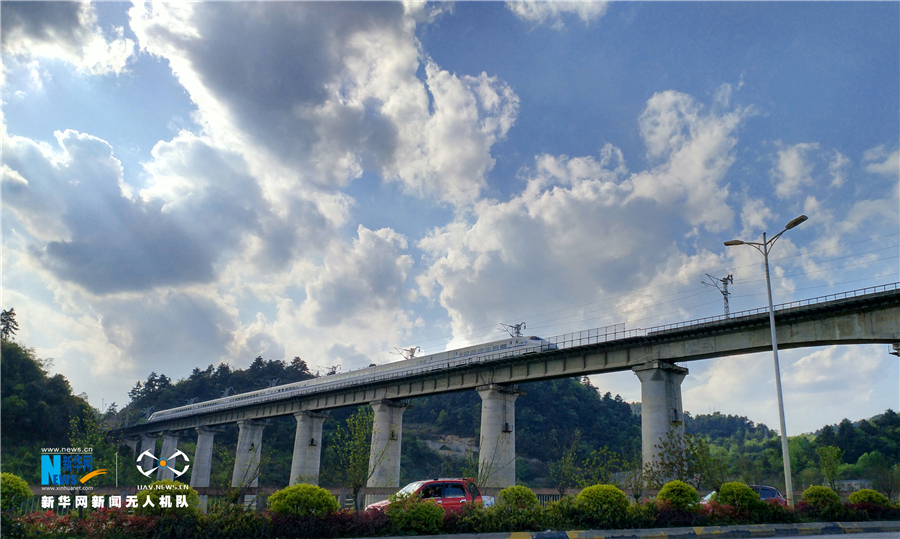 貴州省地處中國西南腹地,全省高原山地居多,因此高鐵建設(shè)的橋隧占比較高。在貴陽市烏當(dāng)區(qū)新添寨,高鐵滬昆線、貴廣客運專線、貴開城際客運專線的隧道和橋梁交織在一起,形成“五洞五橋”并行,形似“五龍出?!钡膲延^景象。圖為3月29日,一輛動車在高鐵線路上運行。新華網(wǎng)周遠(yuǎn)鋼 攝