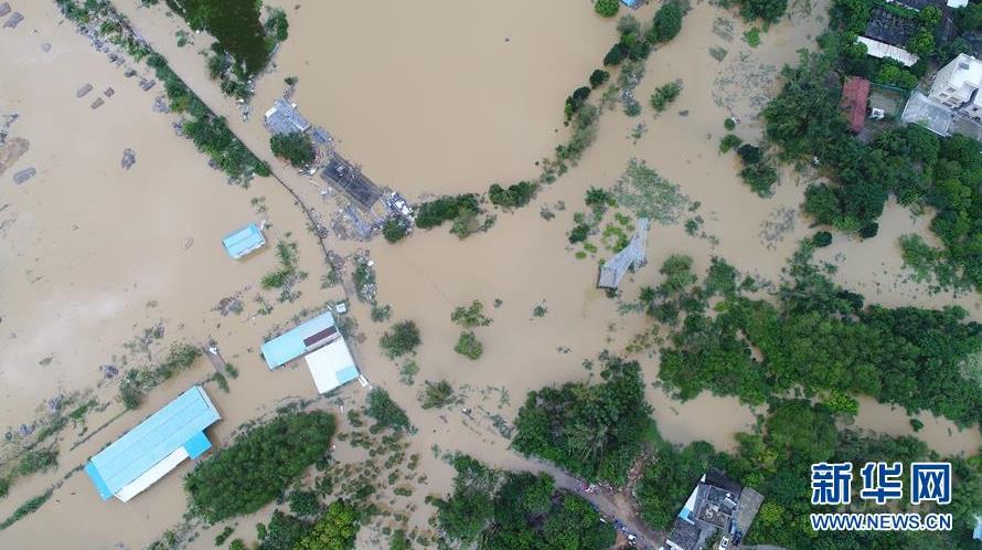 這是9月18日在廣東省陽(yáng)江市陽(yáng)春市拍攝的水浸情況(無(wú)人機(jī)拍攝)。  新華社記者張加揚(yáng)攝