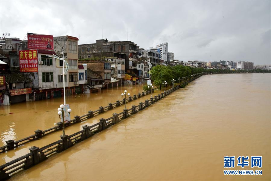 9月18日,陽(yáng)春市漠陽(yáng)江畔的街道被洪水淹沒(méi)。  新華社記者 周科 攝