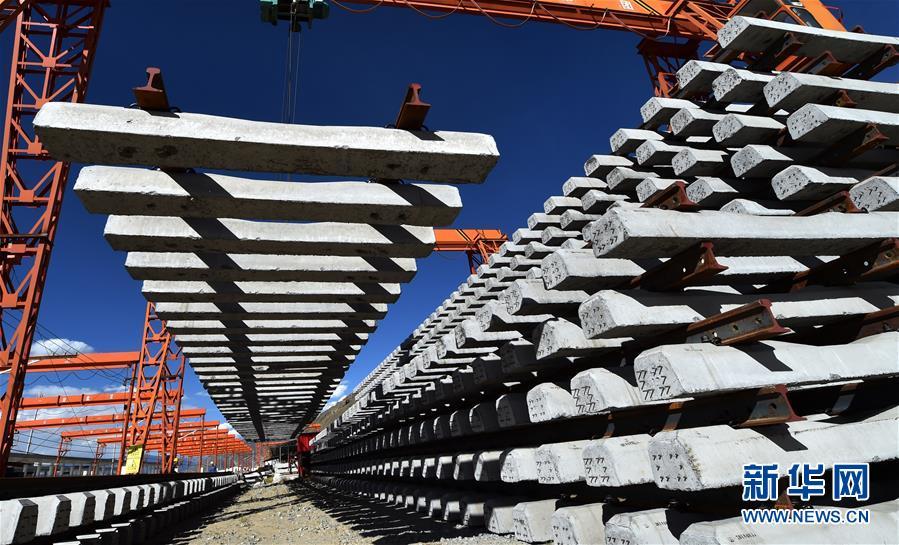 9月19日,在位于西藏拉薩曲水縣的中鐵十一局三公司協(xié)榮鋪架基地,用于架設(shè)川藏鐵路拉薩至林芝段(拉林鐵路)的首批軌排完成生產(chǎn)下線。據(jù)悉,拉林鐵路鋪軌任務(wù)全長(zhǎng)400余公里,需要生產(chǎn)軌枕44萬(wàn)多根。 新華社記者 覺(jué)果 攝