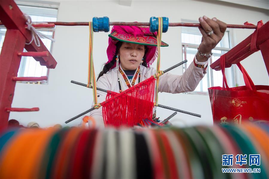 員工卓瑪在鹽湖鄉(xiāng)羌麥村民族手工編織廠(chǎng)工作(9月19日攝)。 2018年,西藏阿里地區(qū)革吉縣鹽湖鄉(xiāng)政府自籌資金成立羌麥村民族手工編織廠(chǎng),編織廠(chǎng)將當(dāng)?shù)貍鹘y(tǒng)手工編織技藝與市場(chǎng)需求相結(jié)合,生產(chǎn)手提包、圍脖、腰帶、毛毯、藏式頭巾等產(chǎn)品,并參加旅游推介活動(dòng),拓寬編織品銷(xiāo)售渠道,助力當(dāng)?shù)鼐用衩撠殹?新華社記者 劉東君 攝