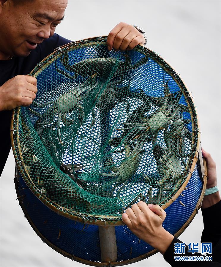 9月21日,蟹農展示剛捕撈到的陽澄湖大閘蟹。新華社記者李響攝