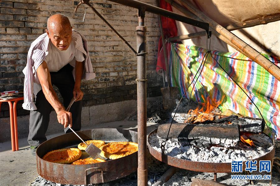 9月22日,段富善在翻看月餅的烘烤情況。 中秋節(jié)來(lái)臨之際,山西省晉城市澤州縣南嶺鄉(xiāng)段河村的段富善一家人忙碌起來(lái),他們家制作的“柴火月餅”遠(yuǎn)近聞名。 “柴火月餅”起源于明清時(shí)期,餡料以糖搭配花生仁、芝麻、玫瑰等,有近10道制作工序,其中最有特色的是木柴烤制工藝,烘烤師傅必須掌握好火候,才能烤出外皮酥脆、餡料飄香的月餅。 新華社記者 曹陽(yáng) 攝