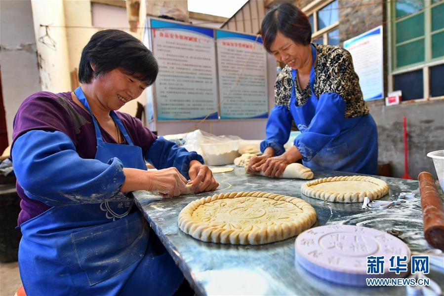 9月22日,段河村村民段粉拽(左)和段金花在制作月餅。 中秋節(jié)來(lái)臨之際,山西省晉城市澤州縣南嶺鄉(xiāng)段河村的段富善一家人忙碌起來(lái),他們家制作的“柴火月餅”遠(yuǎn)近聞名。 “柴火月餅”起源于明清時(shí)期,餡料以糖搭配花生仁、芝麻、玫瑰等,有近10道制作工序,其中最有特色的是木柴烤制工藝,烘烤師傅必須掌握好火候,才能烤出外皮酥脆、餡料飄香的月餅。 新華社記者 曹陽(yáng) 攝
