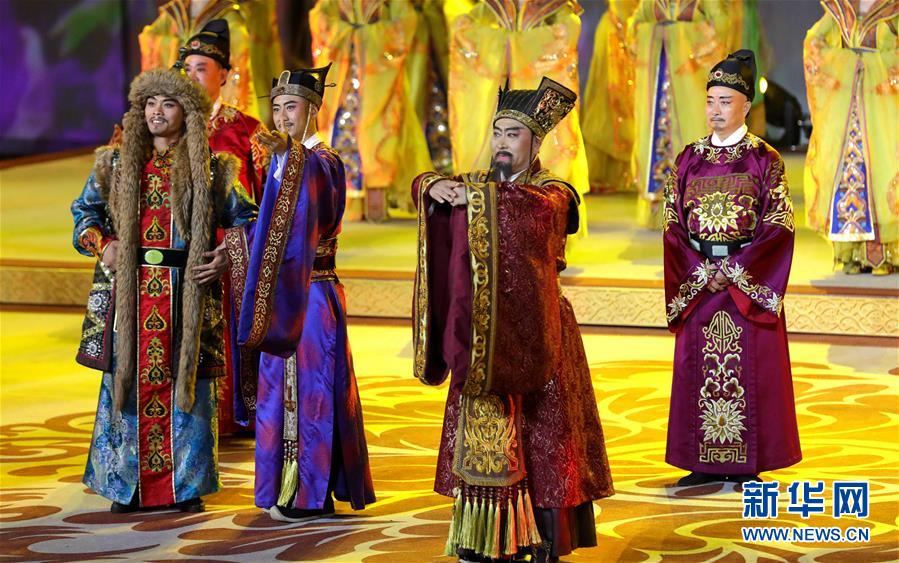 演員在表演《夢長安——大唐迎賓盛禮》(9月23日攝)。  新華社記者 梁愛平 攝