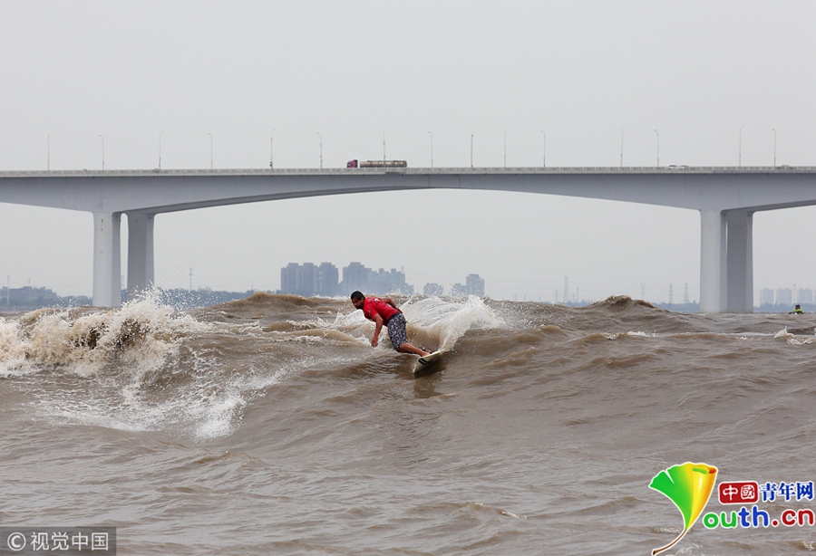 杭州:高手聚集錢塘江 上演沖浪對決