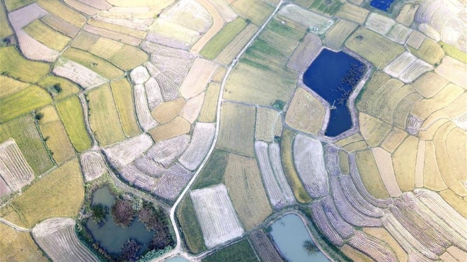 9月28日,人們?cè)跐h中市漢江濕地公園游覽(無(wú)人機(jī)拍攝)。