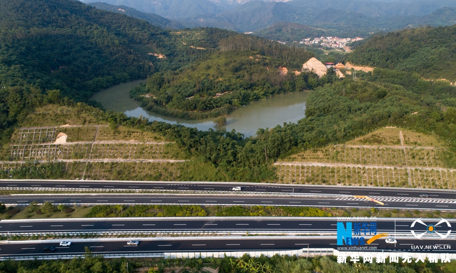 這是改擴(kuò)建工程施工后的廈蓉高速南靖縣和溪路段(無(wú)人機(jī)拍攝)。新華網(wǎng) 肖和勇 攝