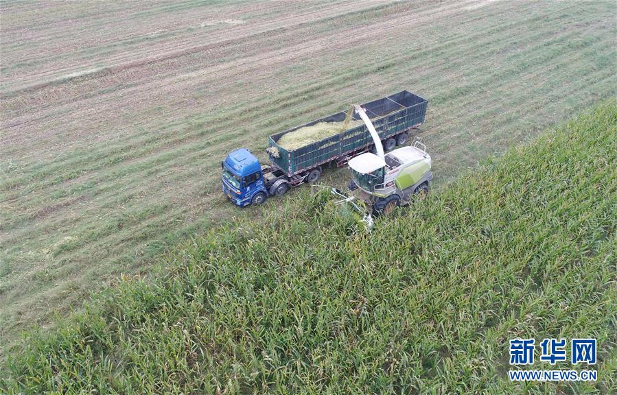 10月8日,河北故城縣里老鄉(xiāng)林場(chǎng)村農(nóng)民在收獲青貯玉米(無(wú)人機(jī)拍攝)。 近年來(lái),河北省故城縣結(jié)合市場(chǎng)需求,通過(guò)“龍頭企業(yè)+基地+農(nóng)戶(hù)”的經(jīng)營(yíng)模式,鼓勵(lì)引導(dǎo)農(nóng)民發(fā)展訂單式青貯玉米種植,不僅增加了種植戶(hù)收入,而且為養(yǎng)殖企業(yè)提供了優(yōu)質(zhì)飼料。目前,故城縣已發(fā)展青貯玉米種植面積6萬(wàn)余畝。 新華社記者 朱旭東 攝