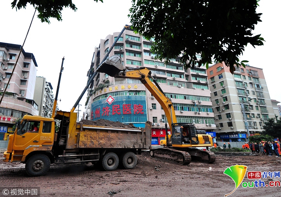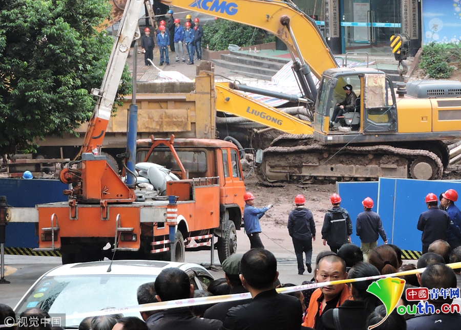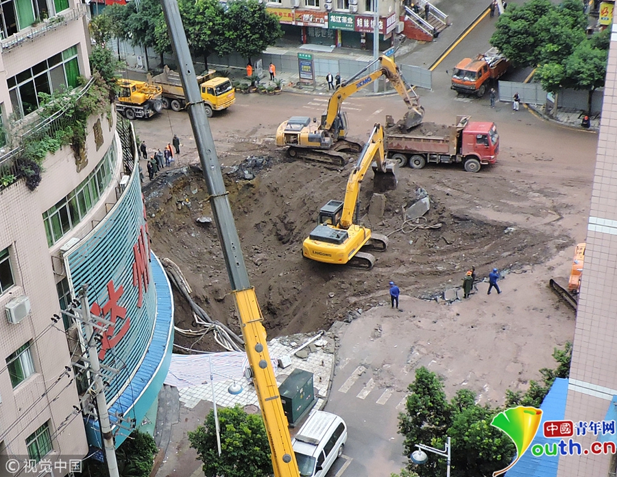 中國青年網(wǎng)北京10月9日電 2018年10月8日消息,四川達(dá)州。10月8日從四川省達(dá)州市達(dá)川區(qū)委宣傳部獲悉,7日14時30分左右,達(dá)川區(qū)東環(huán)南路103號人行道路面發(fā)生塌陷險情,經(jīng)調(diào)取視頻監(jiān)控和走訪周邊群眾,救援人員初步判斷疑似有4人掉入坑中。圖片作者:視覺中國