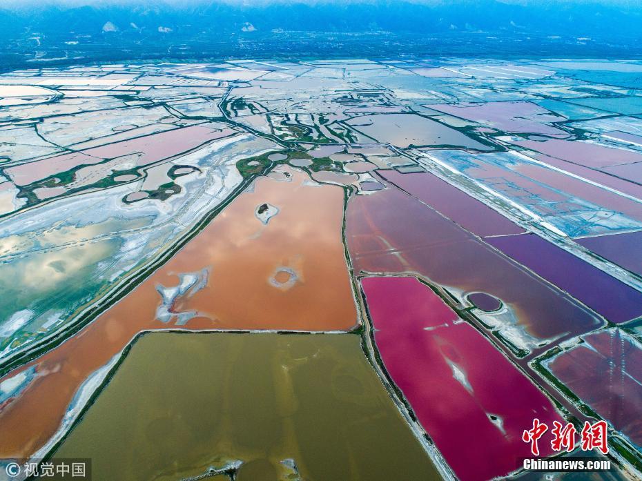 10月6日,山西省運(yùn)城鹽湖景區(qū)鹽湖秋日美景。入秋以來,隨著氣溫的改變,山西省運(yùn)城鹽湖泛起出色彩斑斕、美不勝收的秋天特有的七彩景致,非常迷人。尚建周 攝 圖片來源:視覺中國