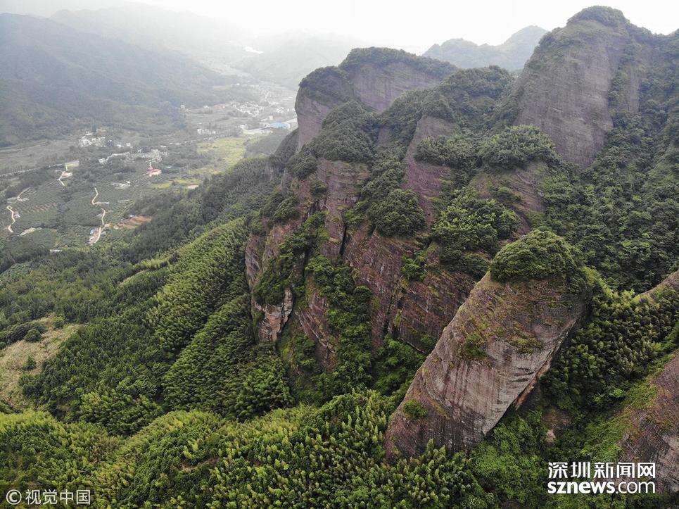 航拍位于贛粵兩省交界處的江西南武當(dāng)山。 南武當(dāng)山擁有99座千姿百態(tài)的巍峨石峰,丹霞地質(zhì)風(fēng)貌突出,連綿十里,被稱為“武當(dāng)十里畫廊”。