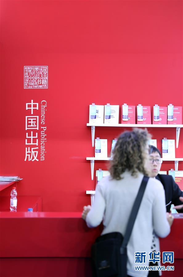 10月10日,在德國法蘭克福,一名讀者在第70屆法蘭克福書展中國展區(qū)參觀。