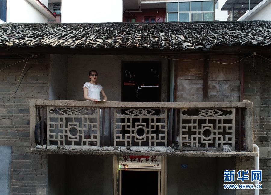9月26日早晨,楊虹在自家陽臺(tái)練習(xí)發(fā)聲(無人機(jī)拍攝)。
