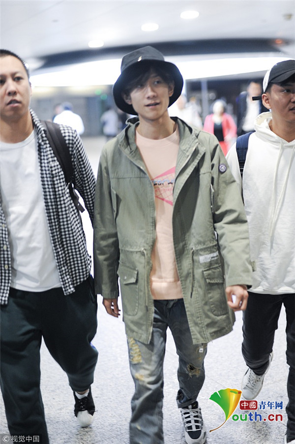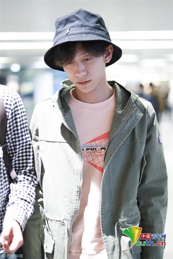 2018年10月14日,上海,張一山抵達(dá)上海機(jī)場(chǎng)。張一山戴漁夫帽眼袋嚴(yán)重瞬間老十歲, 用手擋臉?biāo)撇辉干乡R。