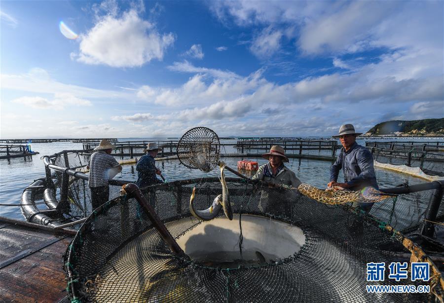 8月18日,南麂島海域內(nèi)的“海上牧場(chǎng)”養(yǎng)殖區(qū)內(nèi),漁民正捕撈大黃魚(yú),處于仿生養(yǎng)殖環(huán)境的大黃魚(yú)需要生長(zhǎng)2至3年。進(jìn)入8月,浙江省溫州市平陽(yáng)縣南麂鎮(zhèn)海域上大片的大黃魚(yú)、貽貝等特色海產(chǎn)品養(yǎng)殖區(qū)域迎來(lái)豐收季節(jié),養(yǎng)殖戶們駕駛漁船在養(yǎng)殖區(qū)海域進(jìn)行打撈收獲,在碧海藍(lán)天下構(gòu)成了一幅“海上牧場(chǎng)”的美麗豐收景象。近年來(lái),南麂鎮(zhèn)政府引導(dǎo)漁民養(yǎng)殖戶充分發(fā)揮“靠海吃?!钡馁Y源優(yōu)勢(shì),大力發(fā)展海洋養(yǎng)殖經(jīng)濟(jì)和海島旅游經(jīng)濟(jì),實(shí)現(xiàn)了南麂由“生態(tài)美”向“產(chǎn)業(yè)美”,“產(chǎn)業(yè)美”向“經(jīng)濟(jì)美”的轉(zhuǎn)變。同時(shí)該鎮(zhèn)堅(jiān)持以大黃魚(yú)、貽貝等為特色產(chǎn)業(yè)支撐,精準(zhǔn)發(fā)展高效海洋養(yǎng)殖業(yè),重點(diǎn)培養(yǎng)一批新型職業(yè)漁民,依靠專(zhuān)業(yè)技術(shù)支持,實(shí)現(xiàn)深海仿生養(yǎng)殖,讓好生態(tài)造就好品質(zhì),重點(diǎn)打造南麂養(yǎng)殖品牌,組建營(yíng)銷(xiāo)網(wǎng)絡(luò),拓展特色海產(chǎn)品市場(chǎng)。新華社記者 徐昱攝