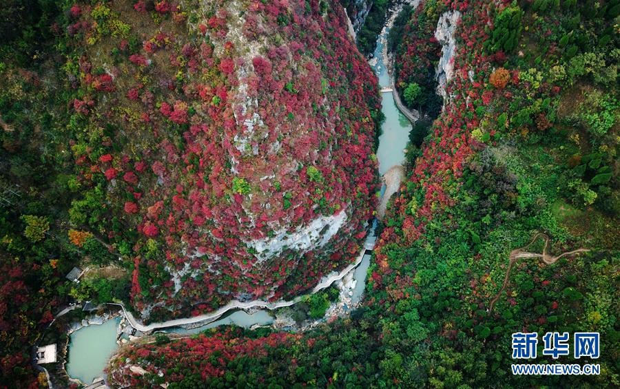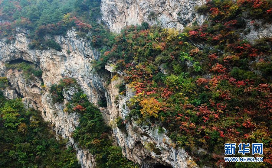 這是西狹頌景區(qū)秋景(10月16日無(wú)人機(jī)拍攝)。 新華社記者 陳斌 攝
