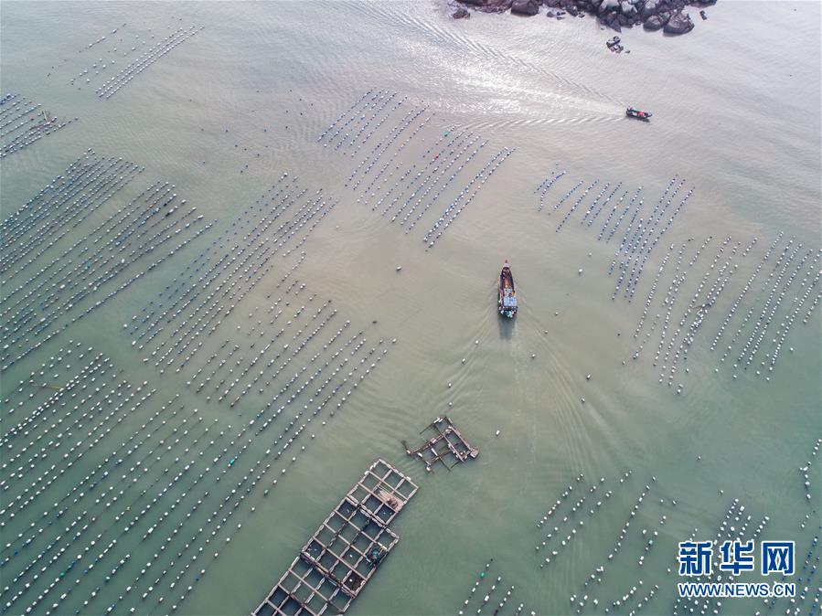 8月19日,空中俯瞰南麂島海域內(nèi)的“海上牧場”養(yǎng)殖區(qū)(無人機(jī)拍攝)。進(jìn)入8月,浙江省溫州市平陽縣南麂鎮(zhèn)海域上大片的大黃魚、貽貝等特色海產(chǎn)品養(yǎng)殖區(qū)域迎來豐收季節(jié),養(yǎng)殖戶們駕駛漁船在養(yǎng)殖區(qū)海域進(jìn)行打撈收獲,在碧海藍(lán)天下構(gòu)成了一幅“海上牧場”的美麗豐收景象。近年來,南麂鎮(zhèn)政府引導(dǎo)漁民養(yǎng)殖戶充分發(fā)揮“靠海吃海”的資源優(yōu)勢,大力發(fā)展海洋養(yǎng)殖經(jīng)濟(jì)和海島旅游經(jīng)濟(jì),實現(xiàn)了南麂由“生態(tài)美”向“產(chǎn)業(yè)美”,“產(chǎn)業(yè)美”向“經(jīng)濟(jì)美”的轉(zhuǎn)變。同時該鎮(zhèn)堅持以大黃魚、貽貝等為特色產(chǎn)業(yè)支撐,精準(zhǔn)發(fā)展高效海洋養(yǎng)殖業(yè),重點培養(yǎng)一批新型職業(yè)漁民,依靠專業(yè)技術(shù)支持,實現(xiàn)深海仿生養(yǎng)殖,讓好生態(tài)造就好品質(zhì),重點打造南麂養(yǎng)殖品牌,組建營銷網(wǎng)絡(luò),拓展特色海產(chǎn)品市場。新華社記者 徐昱攝