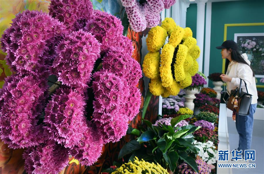 10月17日,游客在開封清明上河園觀賞菊花。重陽時節(jié),各色菊花競相綻放,把古都開封裝點得分外秀美,吸引眾多游客前來觀賞游玩。 新華社記者 李安 攝
