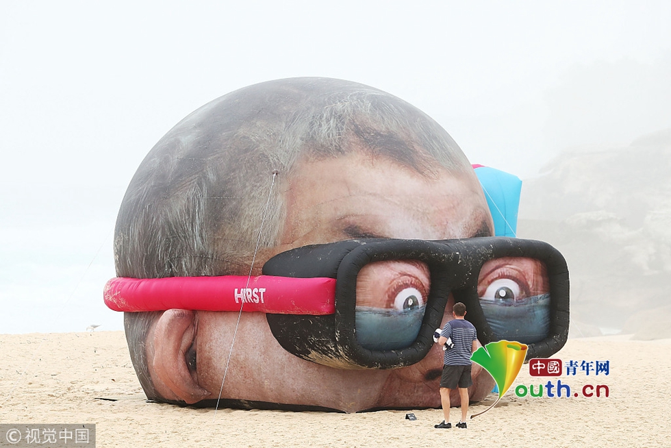 慎點!澳大利亞邦迪海灘雕塑展一幕