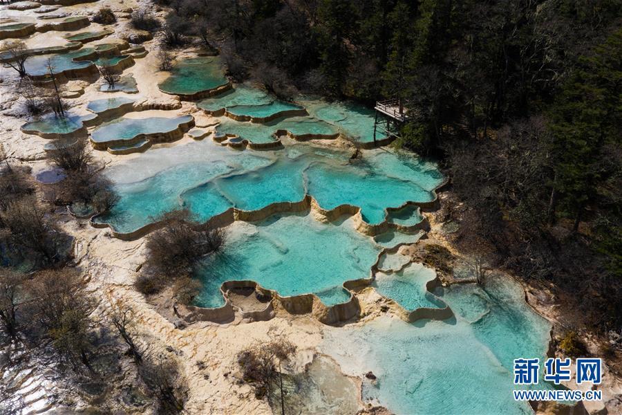 俯瞰黃龍溝爭(zhēng)艷池一角(10月19日無人拍機(jī)攝)。深秋時(shí)節(jié),在雪山、藍(lán)天、白云和彩林映襯下,黃龍溝中的彩池色彩更加斑斕,目前黃龍景區(qū)進(jìn)入觀賞最佳時(shí)節(jié)。黃龍風(fēng)景名勝區(qū)位于四川省松潘縣境內(nèi),以彩池、灘流、雪山、峽谷、森林等聞名,享有“人間瑤池”“圣地仙境”之美譽(yù)。新華社記者 江宏景攝