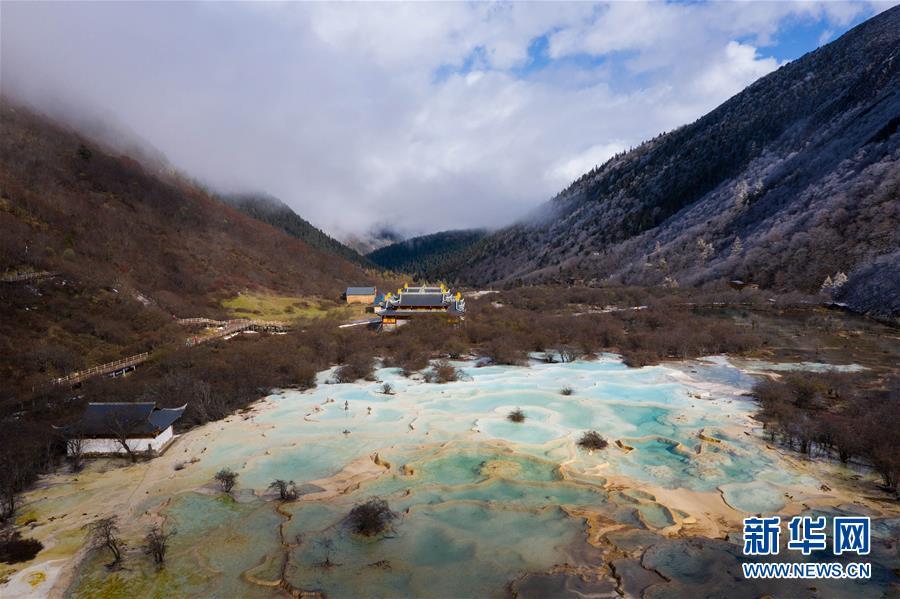 俯瞰黃龍溝五彩池一角(10月19日無(wú)人機(jī)拍攝)。深秋時(shí)節(jié),在雪山、藍(lán)天、白云和彩林映襯下,黃龍溝中的彩池色彩更加斑斕,目前黃龍景區(qū)進(jìn)入觀賞最佳時(shí)節(jié)。黃龍風(fēng)景名勝區(qū)位于四川省松潘縣境內(nèi),以彩池、灘流、雪山、峽谷、森林等聞名,享有“人間瑤池”“圣地仙境”之美譽(yù)。新華社記者 江宏景攝