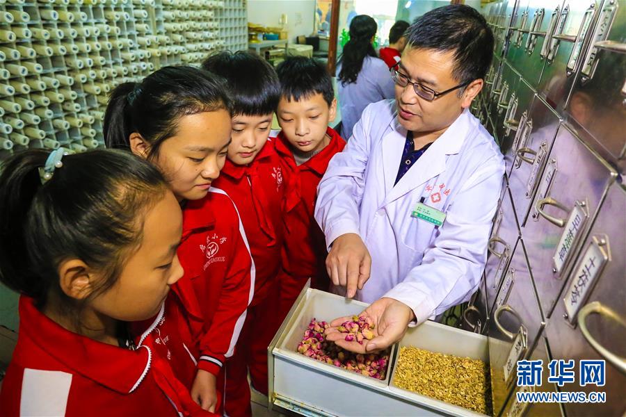 10月22日,安平縣啟蒙小學(xué)學(xué)生在安平縣中醫(yī)院的中藥房識別各類中藥材。 當(dāng)日是世界傳統(tǒng)醫(yī)藥日,河北省安平縣啟蒙小學(xué)組織學(xué)生走進安平縣中醫(yī)院,通過參觀中藥房、認識常見中藥、感受中藥加工等方式,向小學(xué)生普及中醫(yī)藥知識,弘揚傳統(tǒng)中醫(yī)藥文化。 新華社記者李曉果攝