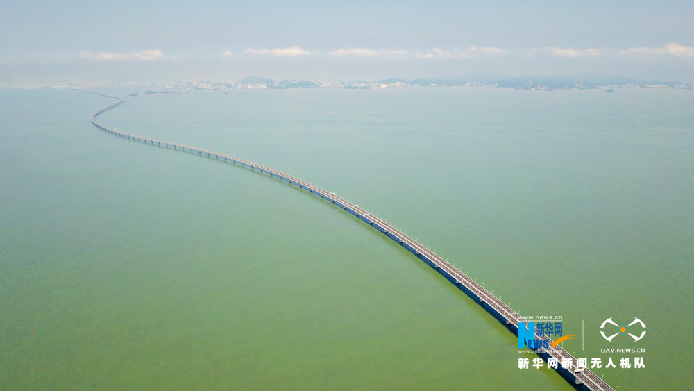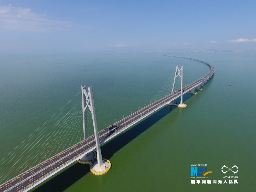 圖為新華網(wǎng)無(wú)人機(jī)隊(duì)航拍港珠澳大橋。新華網(wǎng) 伍嘉煒 攝