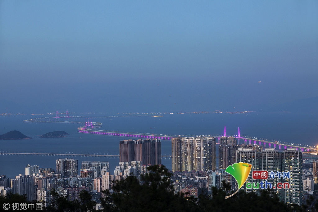 “超級(jí)工程”港珠澳大橋?qū)⒂?4日上午9時(shí)正式通車,一波美圖先睹為快。黃昆震 攝 圖片來(lái)源:視覺(jué)中國(guó)
