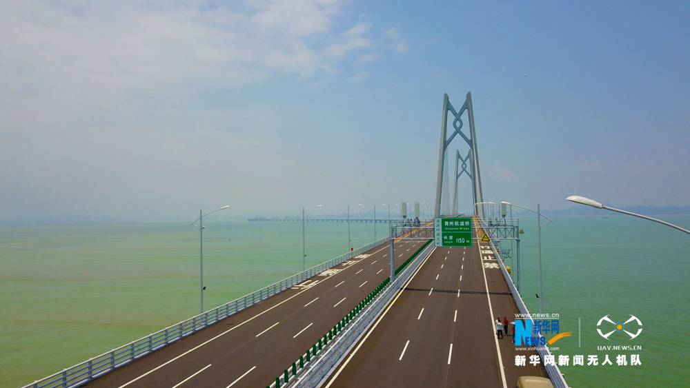 圖為新華網(wǎng)無人機隊航拍港珠澳大橋。新華網(wǎng) 黃璐璐 攝