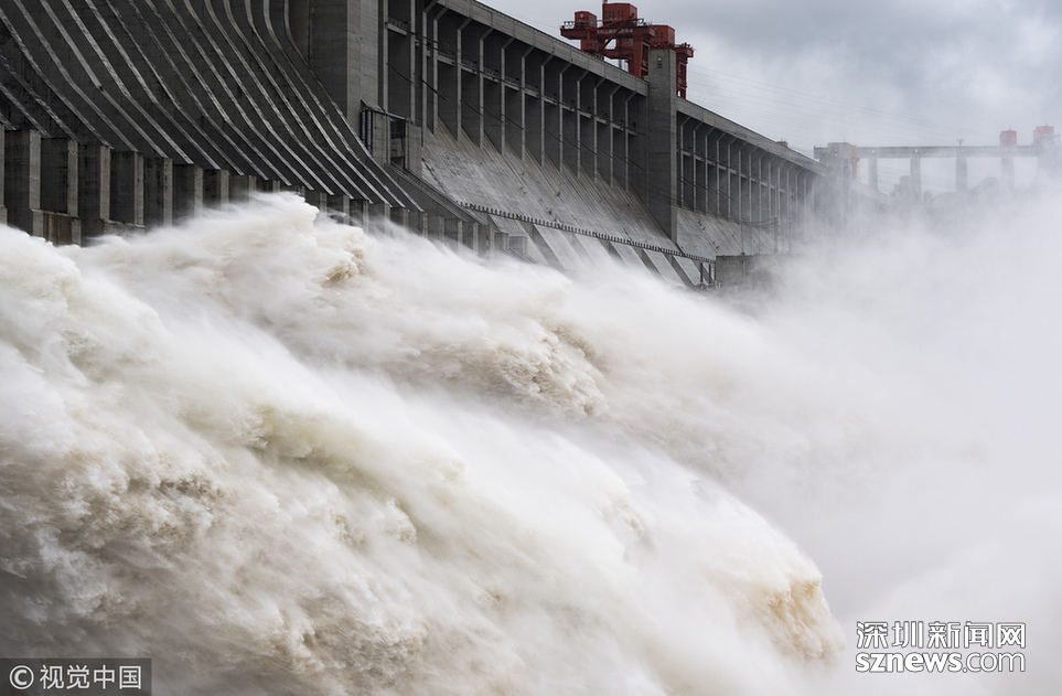 深圳新聞網訊 2018年7月5日,三峽大壩今年首次開閘泄洪。當天,三峽大壩開啟5個泄洪孔下泄洪水,至中午12點左右減至2個。