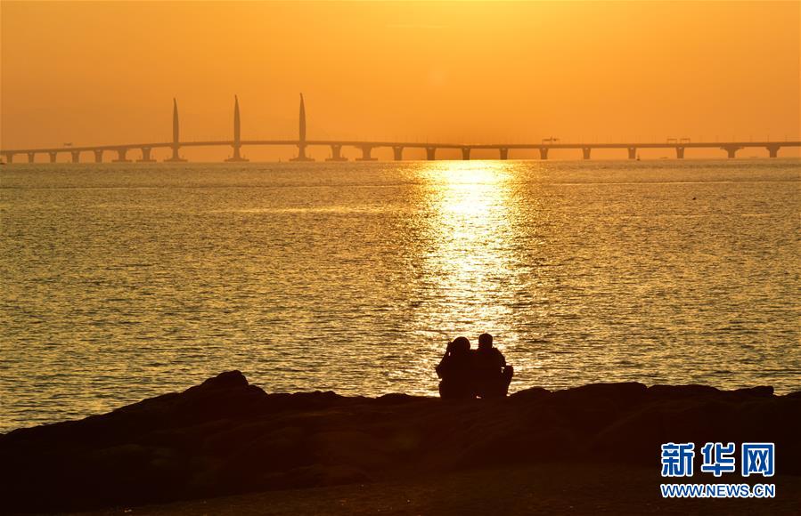 日出時(shí)分的港珠澳大橋(2018年10月22日攝)。 金秋十月,伶仃洋上海天一色、潮聲陣陣,依傍著這片中國南海水域的城市群迎來深具意義的一天。 10月23日上午,港珠澳大橋開通儀式在廣東珠海舉行,中共中央總書記、國家主席、中央軍委主席習(xí)近平出席儀式,宣布大橋正式開通。 碧波之上,一橋飛架香港、澳門、珠海三地,以氣貫長虹的“中國跨度”,飛越滄海百年的歷史風(fēng)云,展現(xiàn)當(dāng)代中國的雄健風(fēng)采。 新華社記者殷博古攝
