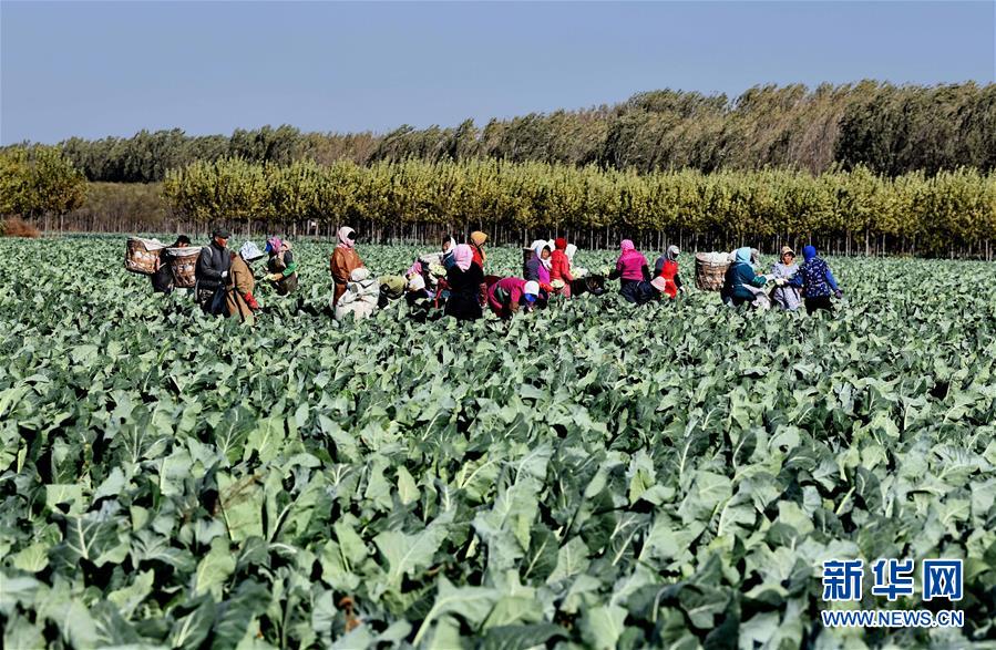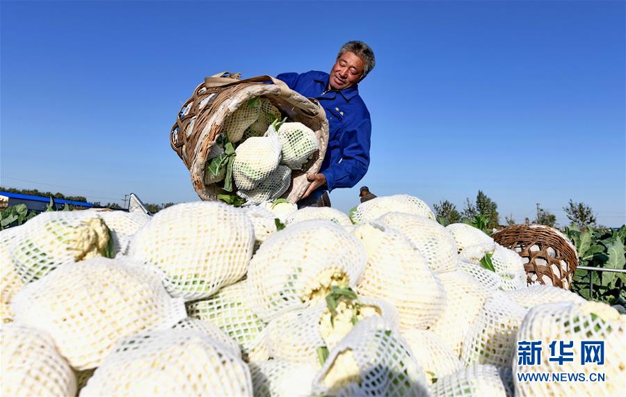 10月29日,樂(lè)亭縣馬頭營(yíng)鎮(zhèn)馬頭營(yíng)村的農(nóng)民在收獲菜花。 新華社記者楊世堯攝