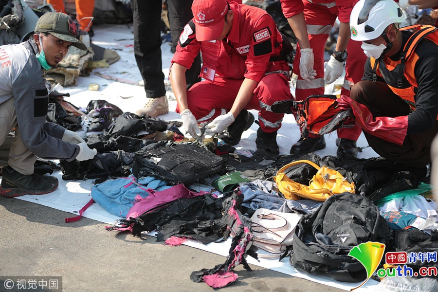 當(dāng)?shù)貢r(shí)間2018年10月30日,印尼雅加達(dá), 印尼搜救隊(duì)持續(xù)打撈出獅航墜毀客機(jī)遇難者遺物和飛機(jī)殘骸。一架載有189人的印尼獅子航空(Lion Air Air)客機(jī)在從首都雅加達(dá)飛往邦加檳港過(guò)程中墜海。機(jī)上載有181名乘客,6名機(jī)組人員和2名飛行員,乘客中包括20名官員。圖片作者:ADEK BERRY