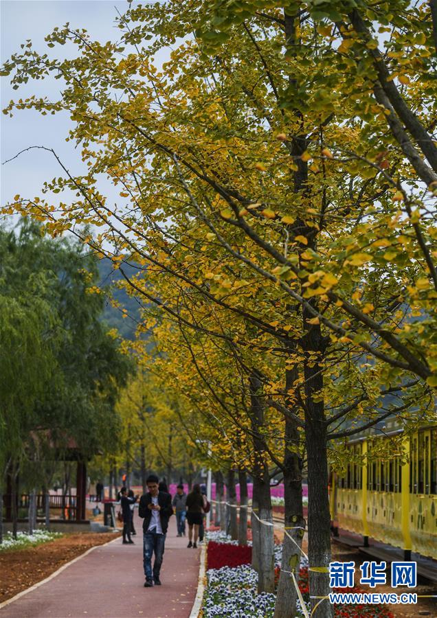 11月2日,游客在金黃的銀杏林中觀賞秋色。 新華社記者 徐昱 攝