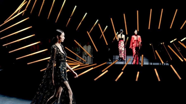 11月2日,模特在北京舉行的中國國際時裝周閉幕式上展示EP雅瑩時裝。11月2日,中國國際時裝周(2019春夏系列)在北京落下帷幕。新華社記者 陳建力攝
