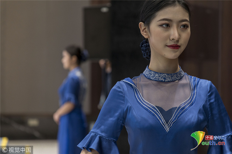 高顏值禮儀志愿者備戰(zhàn)第五屆世界互聯(lián)網(wǎng)大會(huì)