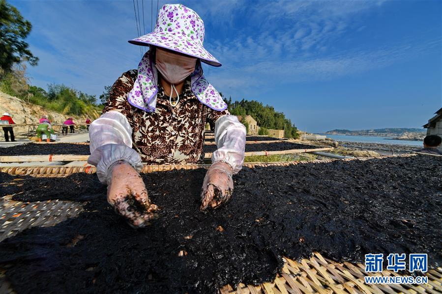 10月24日,福建莆田蔣山村村民在曬紫菜。 新華社記者張國俊 攝
