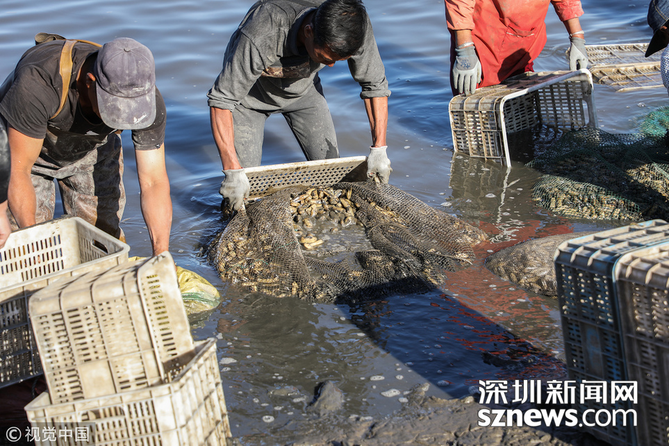 在沿海地區(qū),挖蟶屬于高強(qiáng)度體力勞動(dòng)之一。挖蟶人大都處在四五十歲五六十歲的年齡段,甚至有70多歲的。一位69歲的挖蟶人介紹說,9月8日當(dāng)天,他挖了不到200斤蟶子,屬于挖蟶人當(dāng)中產(chǎn)量較低的。