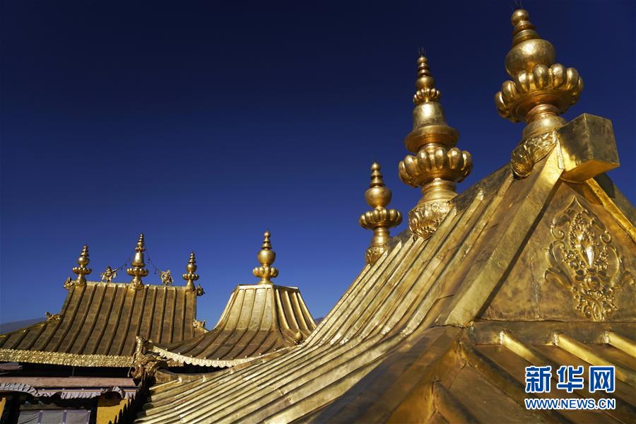 2016年,根據(jù)布達拉宮管理處申報修繕項目的申請,國家文物局先后撥款3100余萬元,于2017年正式啟動了布達拉宮頂層7座金幢、7座寶瓶以及五世、七世、八世和九世達賴靈塔殿及帕巴拉康殿五座金頂?shù)男蘅樄こ獭?新華社記者普布扎西 攝