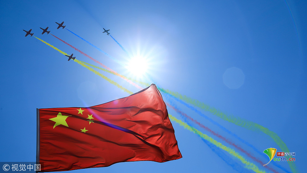 2018年11月7日,空軍紅鷹隊在廣東省珠海市第十三屆中國航空航天博覽會上進行飛行表演。視覺中國